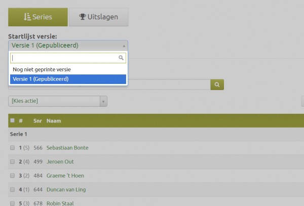 5. Then switch to the 'Not yet printed version' of the startlist, see the screenshot: