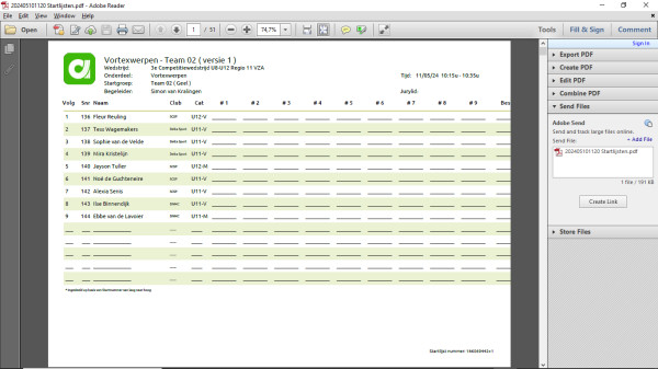 When printing startlists in landscape format, the last column falls outside the PDF.