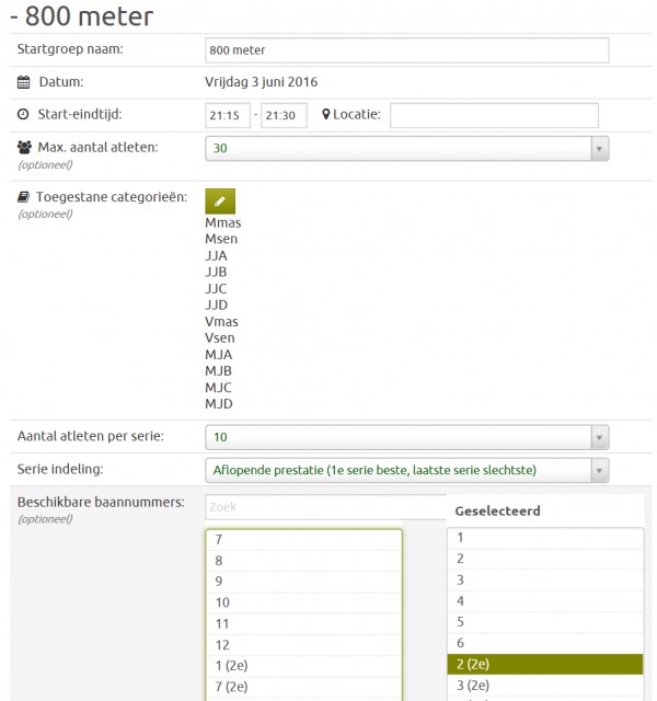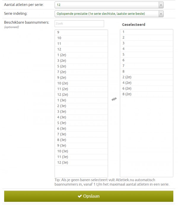 There you specify how many athletes are allowed per heat and which lanes are available. Then choose lane 1,2,3,4,5,6,7,8 and then 2(2nd), 4(2nd), 6(2nd) and 8(2nd).